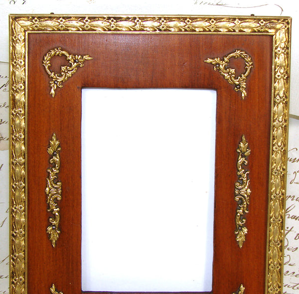 Antique French Empire Revival Style 6" Picture Frame, Wreath & Garland Appliques, Easel Back