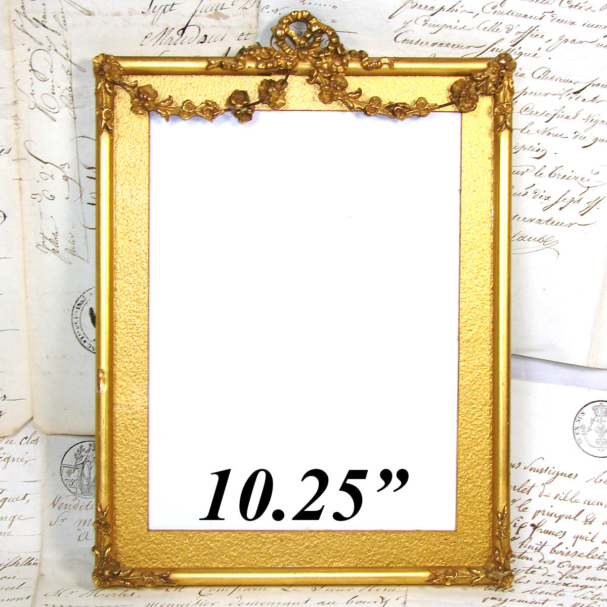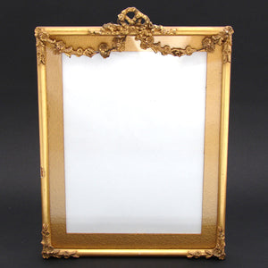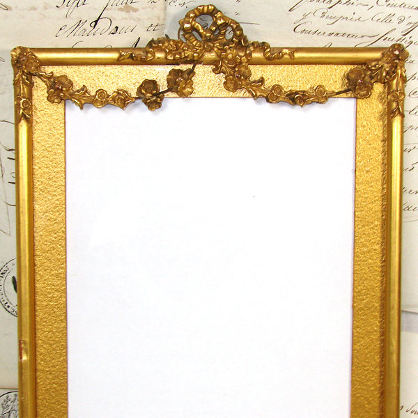 Antique Napoleon III or Victorian Era 10.25" Picture Frame, Lemon Gilt, Bow & Ribbon with Floral Garland