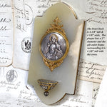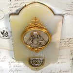 Antique French Holy Water Font, Figural Medallion of Christ & Sacred Heart on White Marble & Bronze Back