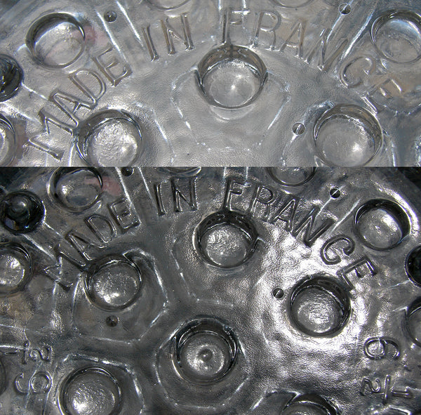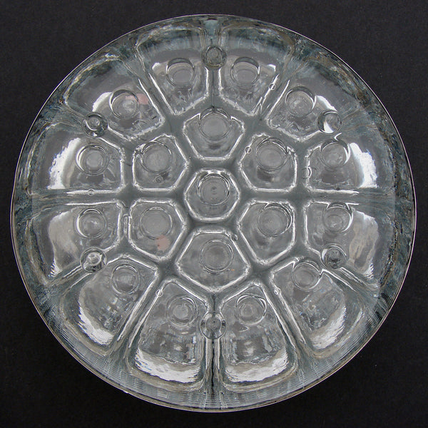 Very good condition! A tiny dimple or two to the silver band, possibly a tiny nip or two to the glass. There appears to be one small crack and inner thin wall broken. The individual holes are separated inside by a super thin layer of glass and one inner thin wall appears to be broken, does not effect water capacity but what hole would spill water into the adjacent hole. See pictures for measurements.