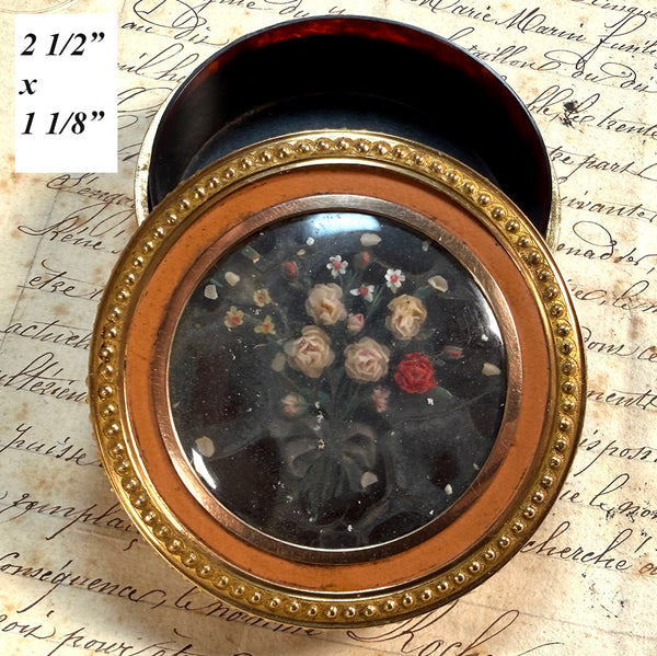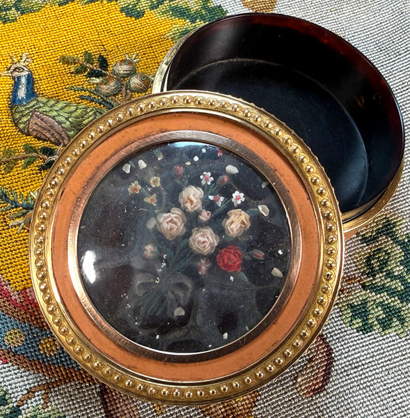 Fine Antique 18th Century Vernis Martin, 18k Gold, Wax Flower Bonboniere, Snuff or Patch Box