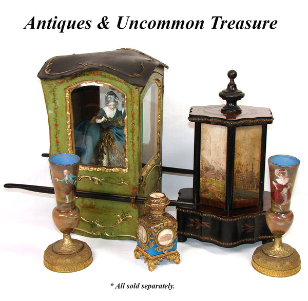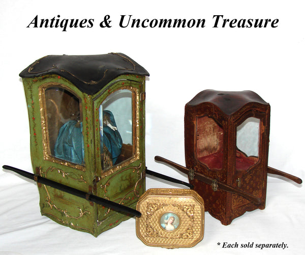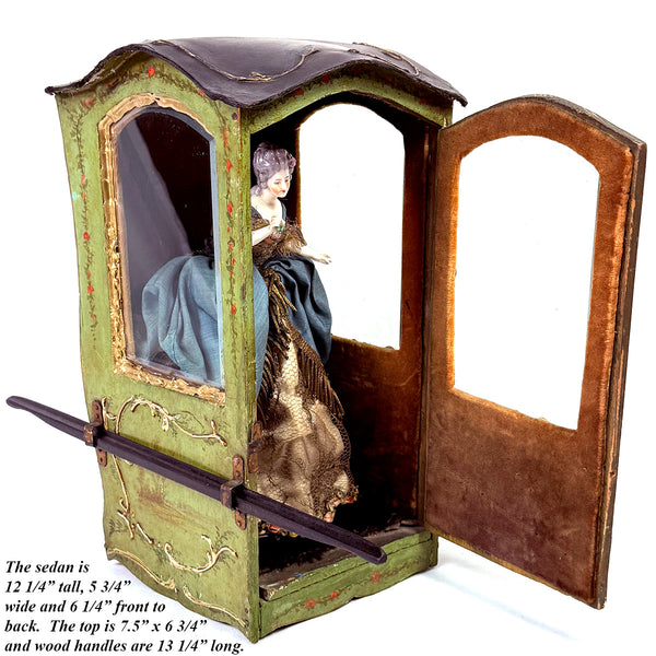 Rare Antique French Vernis Martin 12" Miniature Sedan Chair WITH Exquisite Original Doll, Palanquin, Chaise a Porteur