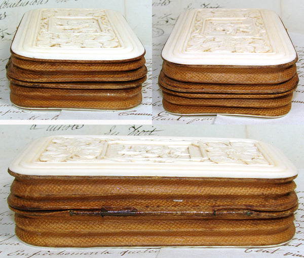 Antique Victorian Era Cigar or Spectacles Case, Purse, Exquisite Hand Carved Ivory