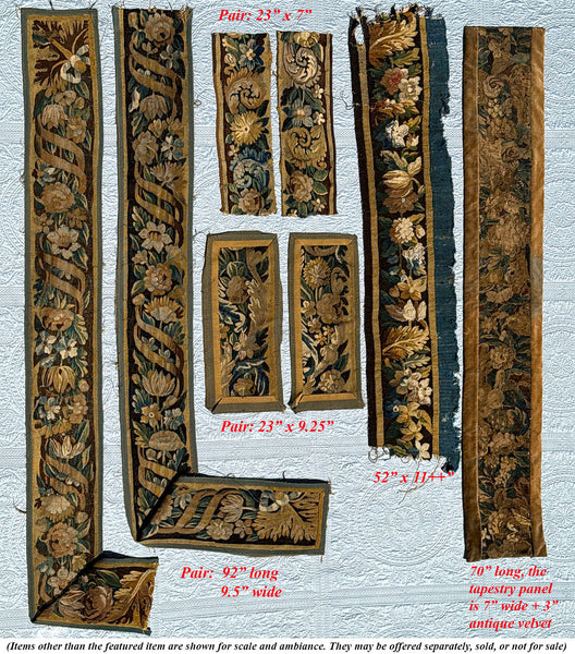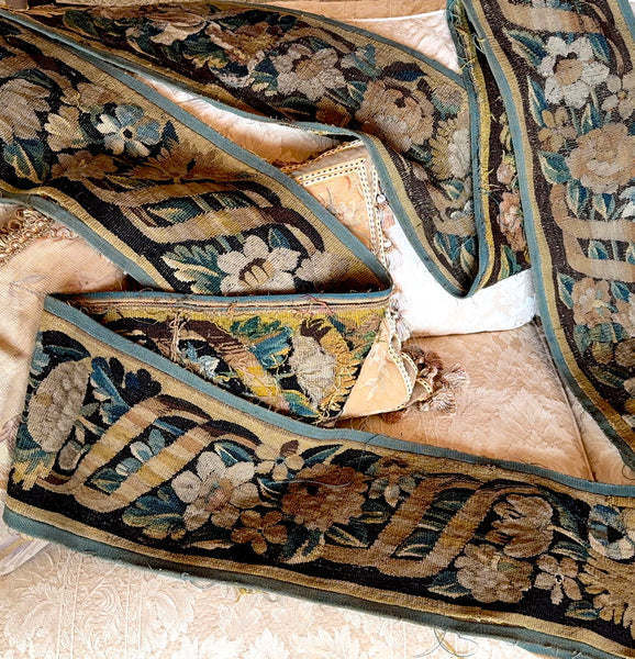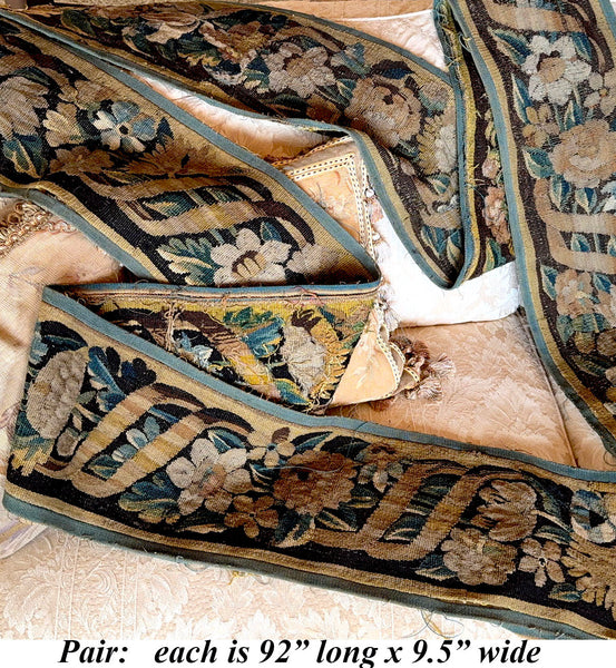 PAIR of 92" x 9.5" Antique 17th Century French or Flemish Verdure Tapestry Border Salvage Panels