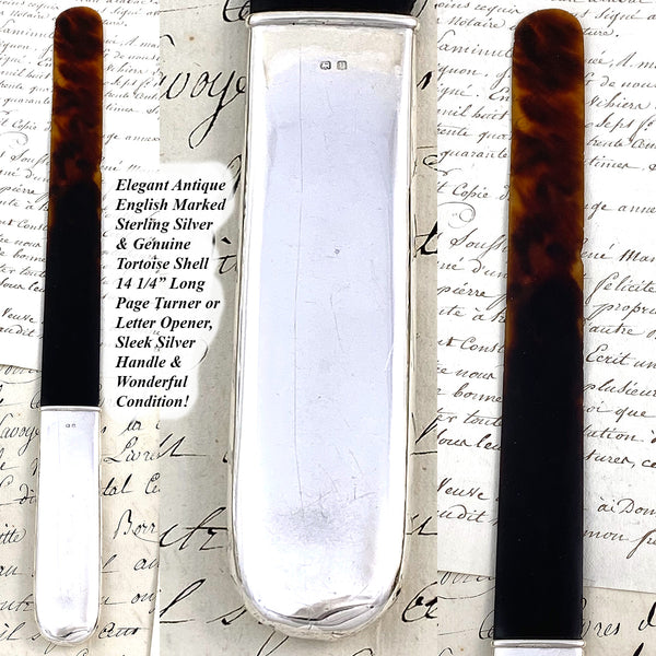 Antique English Hallmarked Sterling Silver & Tortoise Shell 14.25" Text or Book Page Turner