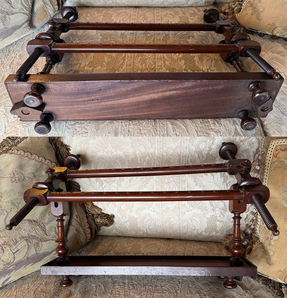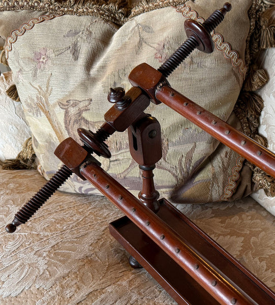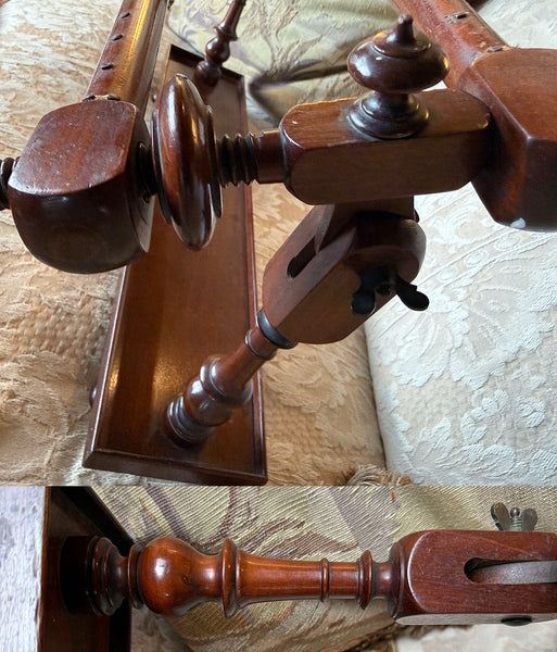 Elegant Antique 19.75" Lathe Turned French Tabletop or Lap Top Embroidery or Needlework Frame, Stand, Stretcher