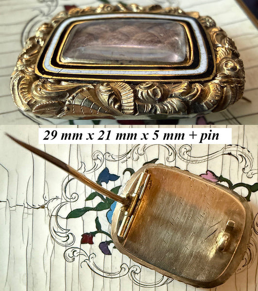 Very good to excellent condition for age and type. Brooch is 29 mm x 21 mm x 5 mm plus pin back. No breaks and no dents. Superb Victorian to Georgian jewelry!