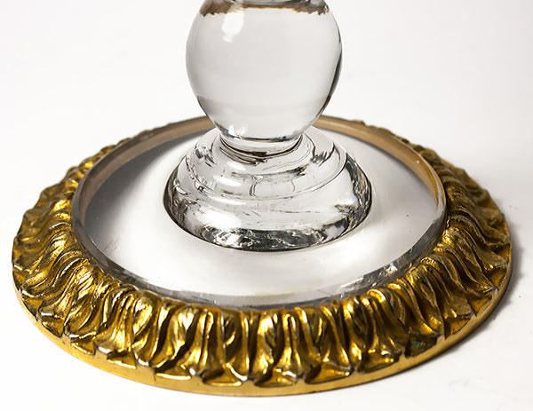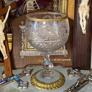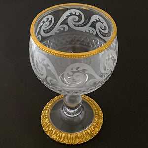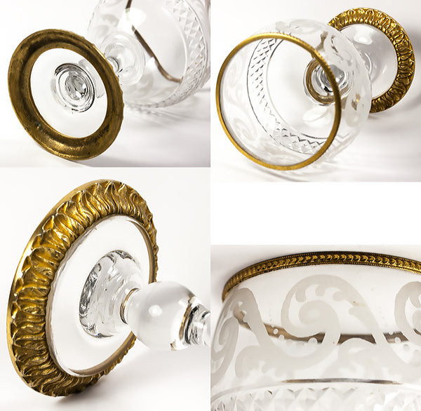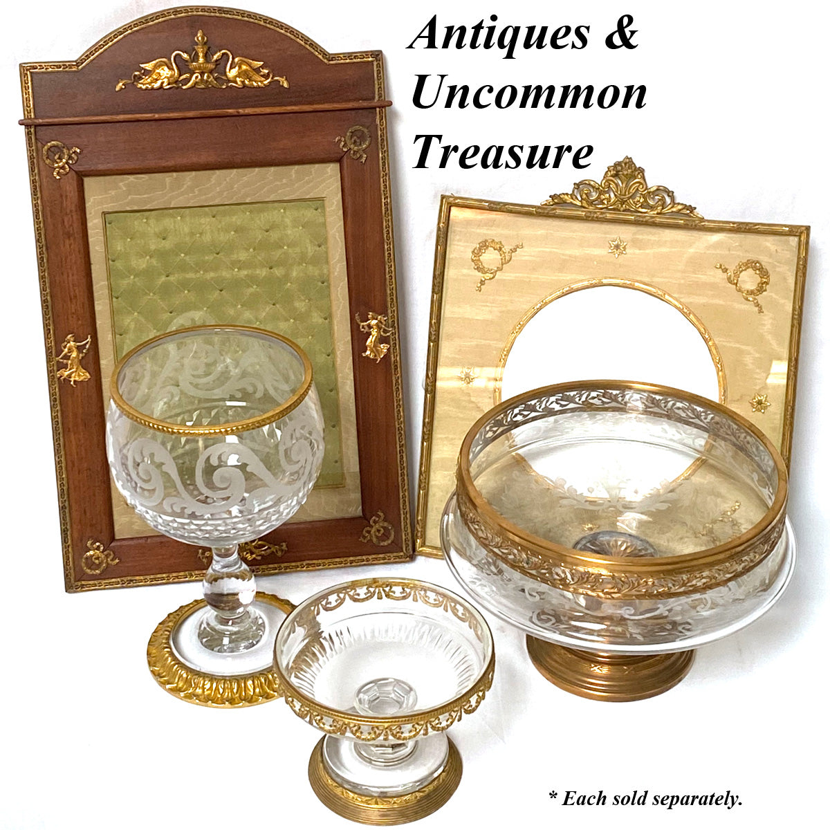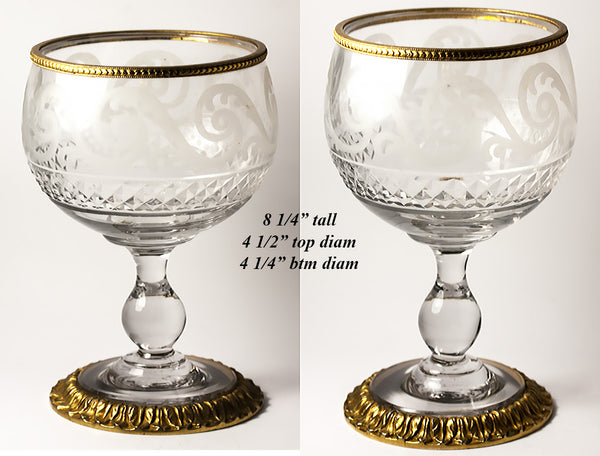 Lg Antique French 8.25" Marriage Goblet, Centerpiece or Rose Vase, Gilt Bronze, Cut & Intaglio Etched Glass