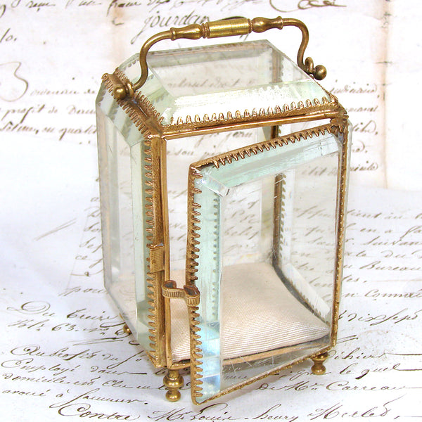 The beveled glass on all sides, including the lid, creates an almost jewel-like visual effect. The thick bevels refract light beautifully, adding a touch of brilliance and depth.  Glass was not merely utilitarian but decorative—a luxury in itself due to the cost and craftsmanship involved.  These transparent panels also served to display the contents, typically fine jewelry, miniature portraits or sentimental keepsakes virtually turning the interior into a kind of private stage.