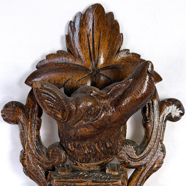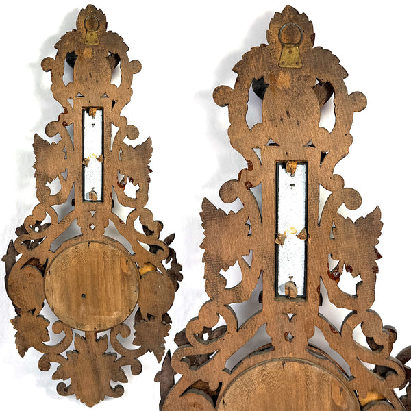 Antique Victorian Era Black Forest Style 27" Wall Barometer & Thermometer, "Fruits of the Hunt" Theme