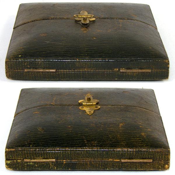 Very good condition.  The portrait is pristine, no loss or damage and even has the original vellum? seal on the back affixing it to the convex glass.  The frame has a bit of tarnish but no damage.  The case is, as you can see, show its age some, mostly evident in the interior lining which is quite tattered.  Exterior in fine shape with some marks but has the original clasp.  See images for all measurements.