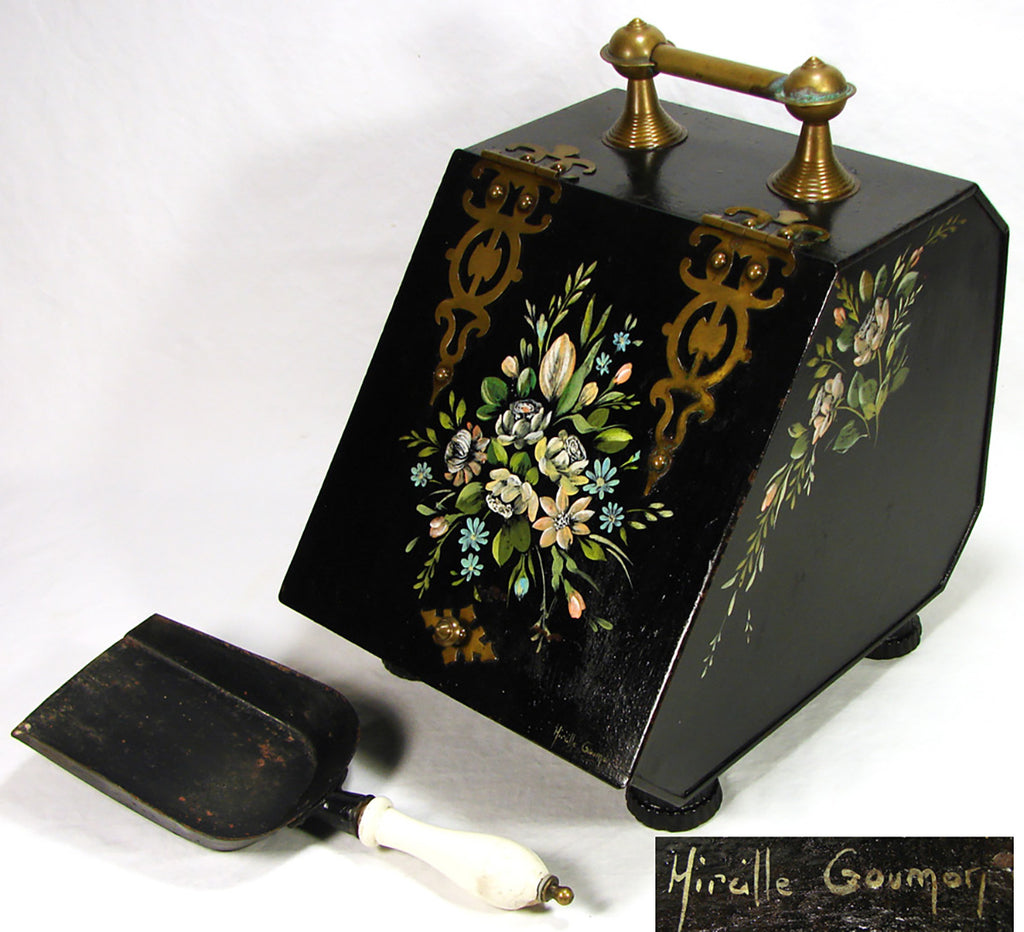 Antique French Desk Box, Letters Chest, Silk Baffles, c. 1830s, HP Floral Inlay