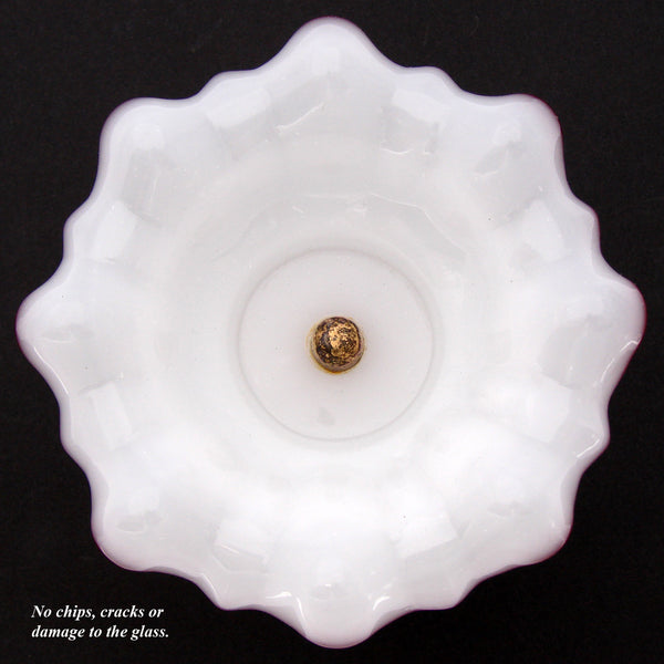 Antique Victorian to Edwardian Era 5.75" Tazza, Bonbon or Candies Dish, Ruffled White Opaline Glass & Gilt Metal Base