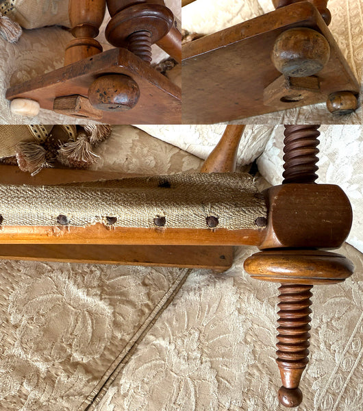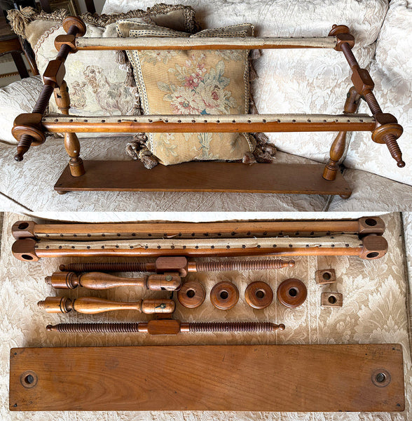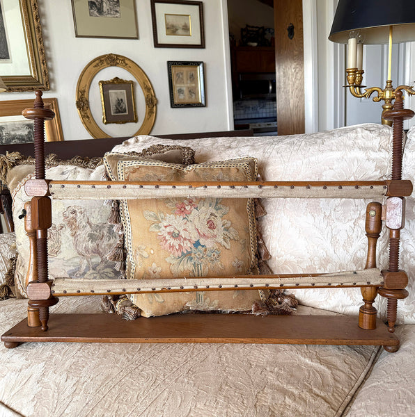 Antique 28.5" Lathe Turned French Tabletop or Lap Top Embroidery or Needlework Frame, Stand, Stretcher
