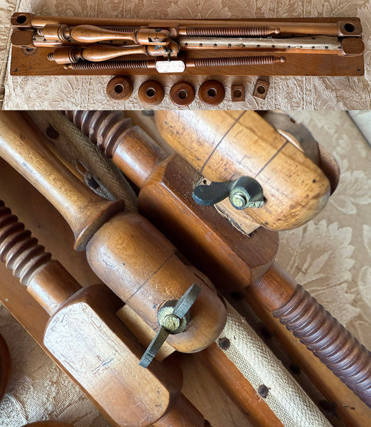 Very good to excellent condition for age and type, it is the type used from 1700s on, and I would date this one mid- late 1800s. Some age to the wood, but no breaks, no repairs. Bun feet on bottom. Beautiful finish to all the wood.