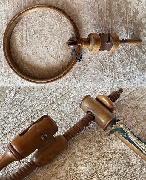Antique French Embroidery Wood Hoop, Table Clamp Style, 10" Working Area