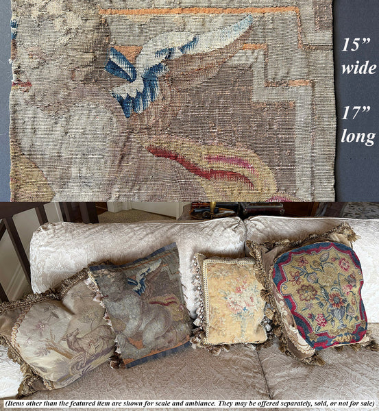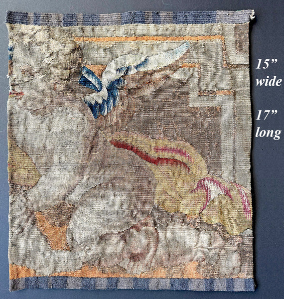 RARE Antique French Aubusson or Gobelin Wool Tapestry Panel with Angel, Putti for Pillow or Wall