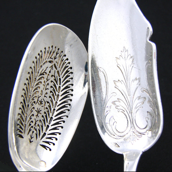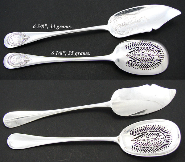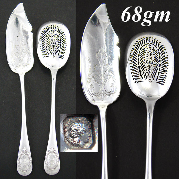 Antique French Sterling Silver 2pc Condiment, Hors d'Oeuvre Flatware Set, Raised Oval Medallion